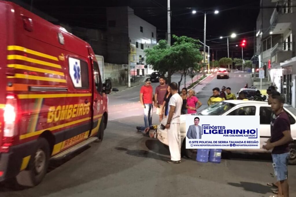 Acidente entre moto e carro deixa motociclista ferido em cruzamento de Serra Talhada