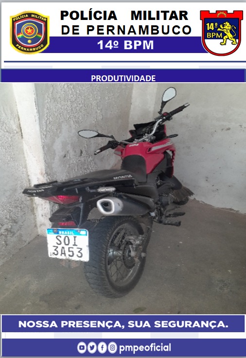 Moto com sinais de adulteração é apreendida pela Polícia Militar em Triunfo