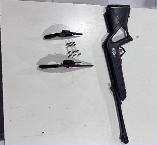 - Uma espingarda de pressão, também utilizada nas ameaças
