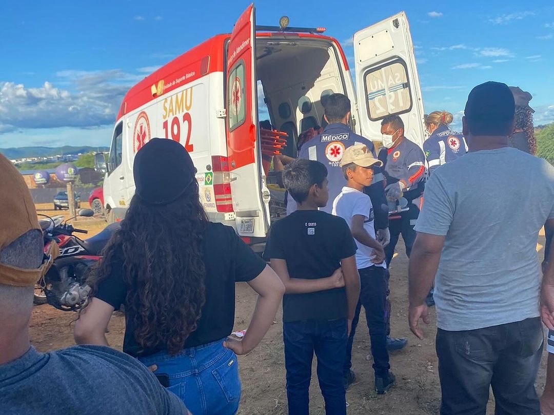 O Serviço de Urgência Móvel SAMU foi acionado, no local o jovem estava consciente e orientado. Queixando apenas de dor no quadril e fêmur.