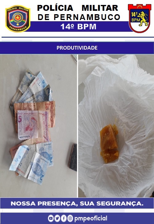 Com o passageiro foi encontrada a quantia de R$ 14, que ele afirmou ser para pagar a corrida. Já com o mototaxista os policiais localizaram R$ 23.