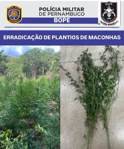 Uma plantação com cerca de 13 mil pés de maconha foi erradicada por policiais militares do BEPI e do BOPE nesta quinta-feira, 23, na zona rural do município de Carnaubeira da Penha.